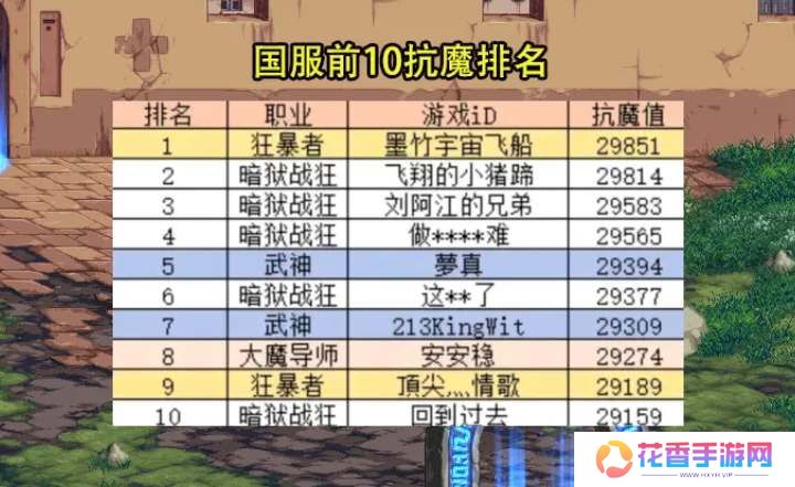 dnf手游前10抗魔排行榜一览