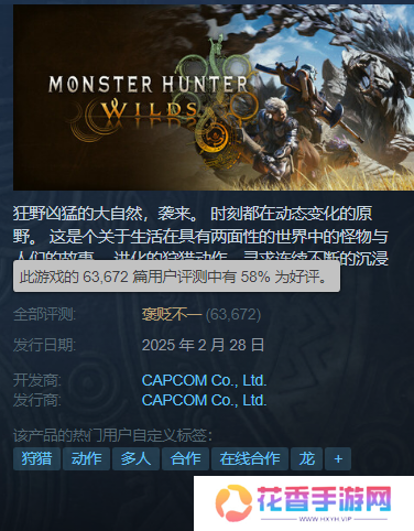 卡普空大作《怪物猎人:荒野》已上线数日,突出的数据表现延续了这个IP的成功惯例。只不过在口碑方面,《怪物猎人:荒野》还有“亿点点”问题。截止到目前,Steam好评率仅为58%。