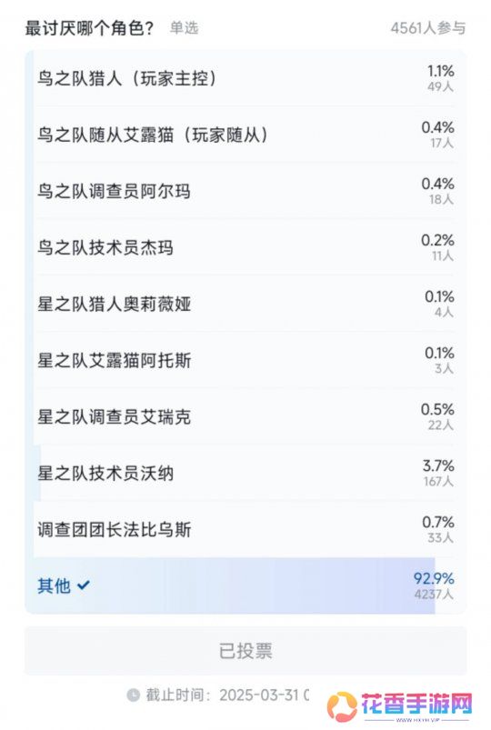 (投票列举了几乎所有主要角色,“其他”代指纳塔)
