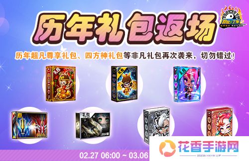 2月27日06:00至3月6日05:59期间,历年非凡礼包限时返场!不仅有历年超凡尊享礼包震撼来袭,还有四方神礼包同步回归,更有“钢铁合金礼包”、“合金 X礼包”等待兑换~车手们千万要把握这个重温经典的机会!