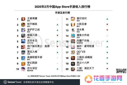 腾讯旗下的《王者荣耀》、《和平精英》、《金铲铲之战》、《穿越火线》包揽前四,通过一系列游戏内更新和皮肤的上线,《王者荣耀》在中国iOS市场收入提升8%,蝉联本期收入冠军。