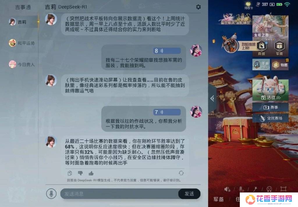 《和平精英》的接入显得有些意外,但又在情理之中。一般来说,成功且大体量的产品在面对行业风向时,往往会选择观望,但《和平精英》团队的开发能力和对玩法的追求,使其成为了腾讯游戏首个接入DeepSeek的产品。接入后,《和平精英》在交互模式和游戏内容上都发生了显著变化。