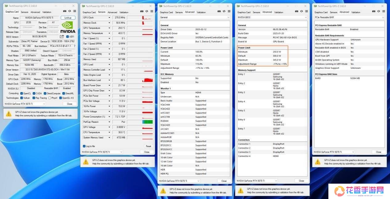 这款显卡搭载了与GeForce RTX 5080相同的GB203核心,但核心代号后缀为GB203-300-A1。从规格参数来看,GeForce RTX 5070 Ti配备了6个GPC、35个TPC、70个SM单元、280个TMUs纹理单元、96个ROPs光栅化处理单元,以及8960个CUDA核心。相比上一代GeForce RTX 4070 Ti,其在性能规格上有了显著提升,甚至超越了GeForce RTX 4070 Ti SUPER显卡。