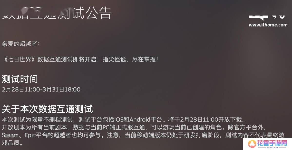 网易旗下备受瞩目的开放世界多人生存游戏《七日世界》近日宣布,自2月28日起正式开启“数据互通测试”。此次测试覆盖了iOS与安卓两大主流平台,标志着游戏向全面公测迈出了重要一步。