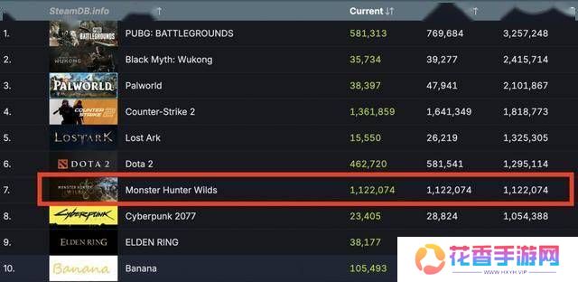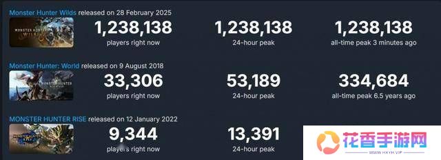 值得注意的是,《怪物猎人:荒野》在Steam上的同时在线峰值已经超越了备受瞩目的《赛博朋克2077》,这无疑进一步彰显了其强大的市场号召力。与此同时,三款《怪物猎人》系列游戏在Steam上的在线峰值对比也显示出,《怪物猎人:荒野》在这一系列中同样占据了举足轻重的地位。