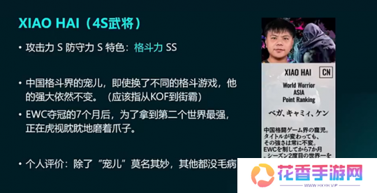 值得一提的是,在赛事预热前,卡普空官方还发布了一份选手评级图。“小孩”曾卓君的攻击力和防守力都是最高的S级。由于本次比赛,采用的是6进2的分组强度比较大,竞争将会更为激烈。