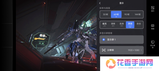 连接到远程设备后,进入[操作]菜单并选择[显示]选项,根据个人需求调整帧率和画面设置,然后将[分辨率]调整为[跟随本机],这样就可以享受全屏无黑边的沉浸式游戏体验。