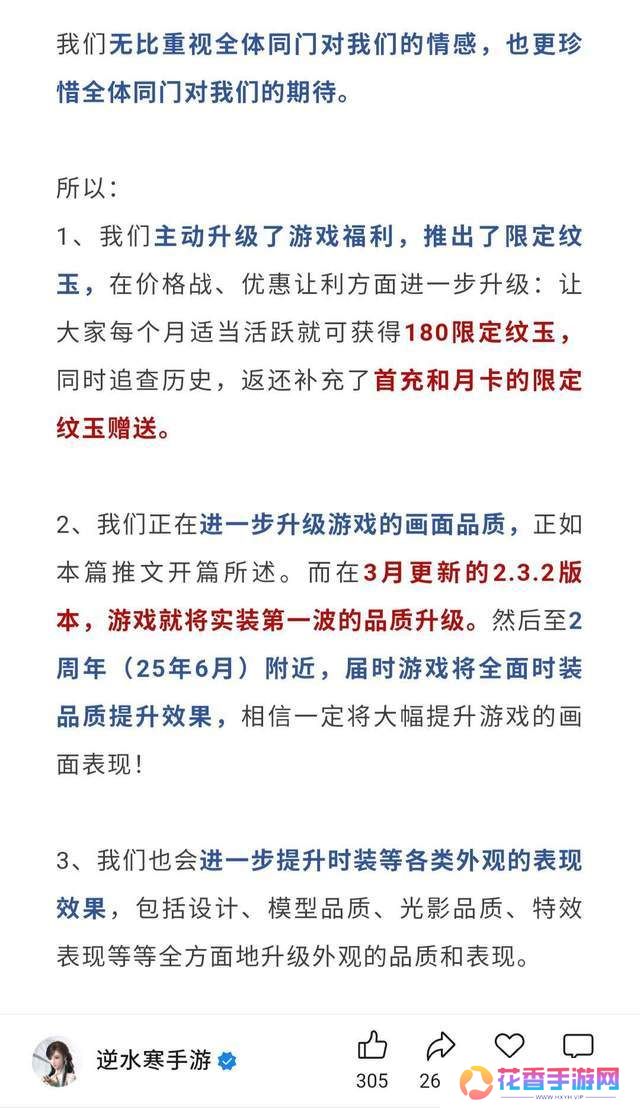 《逆水寒》手游团队的这种运营态度,无疑展现了其对玩家的极度重视和卑微姿态。对于这一系列的举措,你是如何看待的呢?欢迎分享你的想法。