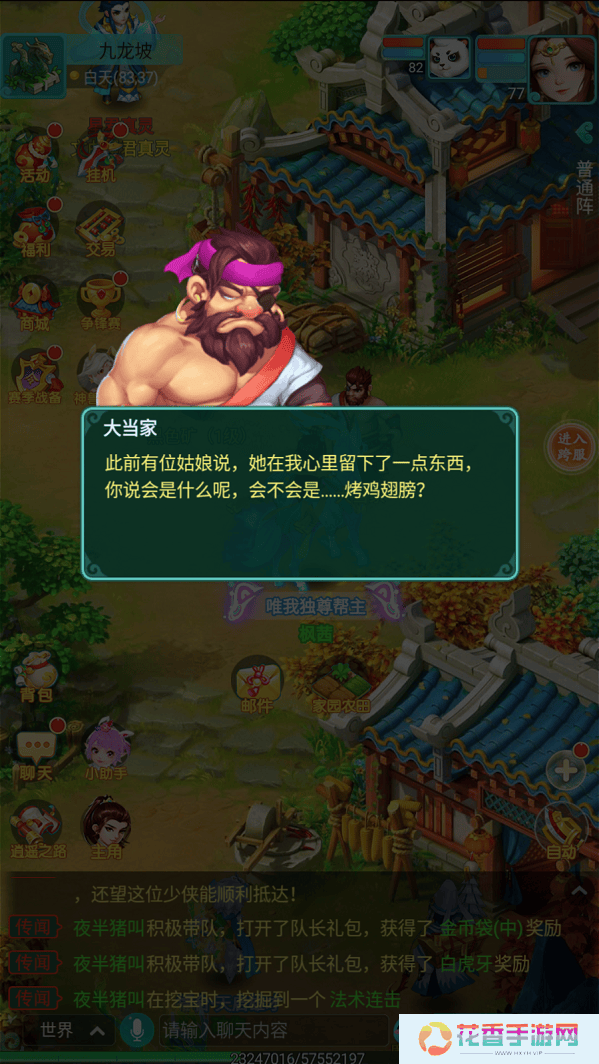 除了美丽的风景和丰富的物产,九龙坡的NPC们也各具特色。在地图东边,有一位名叫大当家的NPC,他外表看似凶恶,实则内心单纯。尽管被女性青睐,他却浑然不知,整天只想着美食,让人忍俊不禁。这样的反差萌也让他成为了九龙坡的一大看点。
