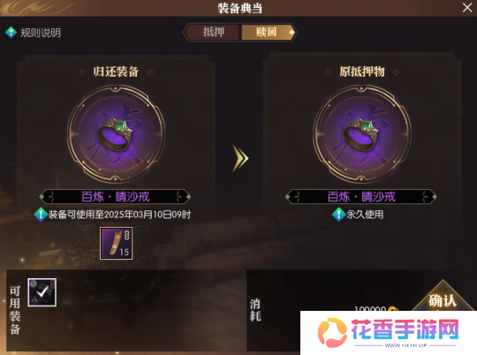7天内随时赎回,且典当7日内都可以照常使用装备的灵活设定,也让玩家直呼良心,堪称0风险试错。