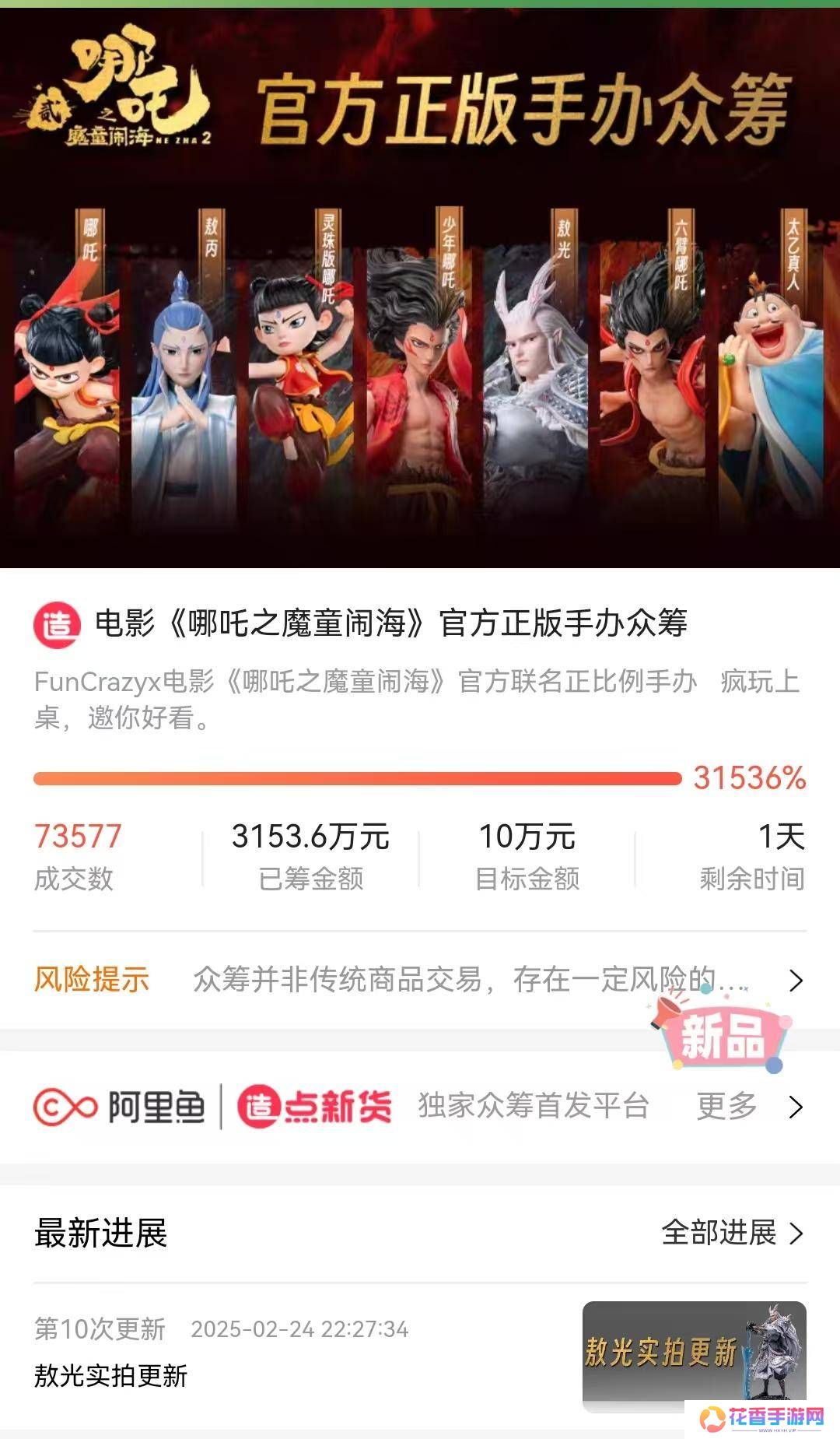 随着《哪吒之魔童闹海》的热映,其相关衍生品市场也迎来了火爆局面。阿里鱼造点新货携手FunCrazy塑料主义发起的授权众筹项目,近日进入了冲刺阶段,众筹金额已突破3153.6万元大关,远超最初预期。