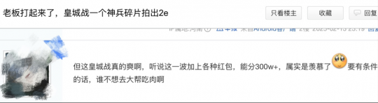 其实早在首届“皇城之巅”刚结束时,就有吃瓜玩家开帖讨论“皇城之主们打起来谁会赢”,评论区也是各自押宝,预测战况。但不论战局如何,大佬“钞能力对轰”的名场面想必是少不了的~
