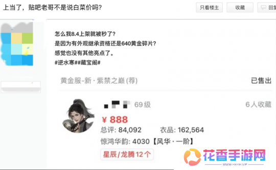而这一切火爆景象,都与黄金服实行的官方不卖数值、极品全靠玩家自己爆的特色机制息息相关。可以说,在这种底色下,游戏里充满了致富机遇,很多玩家运气欧爆到极品,自由交易后血赚一笔,声称“捡到黄金”了。