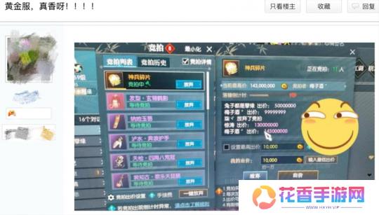 尤其是最近刚打完的“皇城之巅”争夺赛,被玩家戏称为新晋“捡钱胜地”!作为江湖动员规模最广、战斗最激烈的超大型PVP赛事之一,在这里,神豪带领顶尖联盟激情火拼,普通玩家也能跟着吃肉喝汤。像是热身赛后,就有神豪花费2亿铜币(约4.5万RMB)拍下神兵碎片,让很多玩家靠分红小赚四位数。
