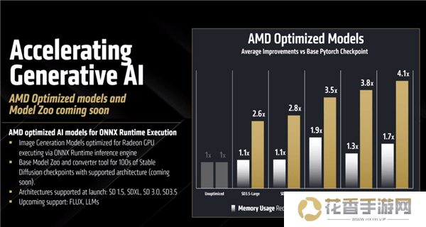 AMD还在发布会上强调了其在AI领域的布局。RX 9070系列显卡的AI加速器升级为第二代,支持结构化稀疏性等推理优化技术,AI性能相比上一代有了大幅提升。这对于生成式AI应用来说,无疑是一个巨大的福音。
