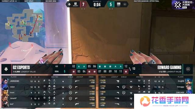 然而,好景不长,EDG在接下来的几回合中连续失误,被G2抓住机会连拿五分。尽管EDG在暂停后试图调整状态,但仍然未能挽回颓势。下半场,G2继续保持着良好的势头,而EDG则显得有些力不从心。尽管他们在某些回合中展现出了顽强的斗志,但最终还是未能抵挡住G2的攻势,以8-13的比分输掉了首局。