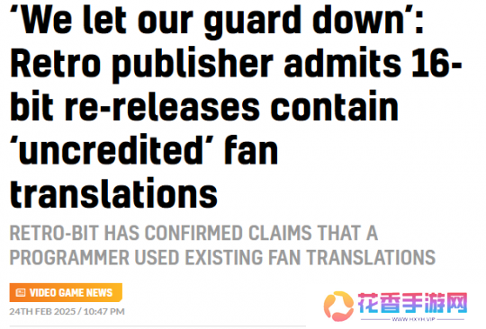 一家专门生产怀旧游戏、替换游戏机以及手柄外设的周边厂Retro-Bit被网友揭发,没有获得许可擅自剽窃玩家的本地化翻译,日前官方承认问题并暂停了游戏发布。