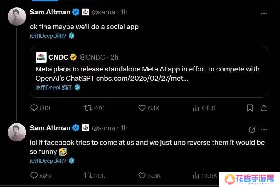 面对meta的这一动作,OpenAI的创始人奥特曼展现出了其幽默风趣的一面。他笑称:“好吧,如果meta真的想在游戏里对付我们,那我们或许可以考虑开发一个社交应用来应对。想象一下,用UNO牌反击他们,这简直太好玩了!”奥特曼的这番言论不仅展现了他的乐观态度,也暗示了OpenAI对于未来竞争的准备和期待。