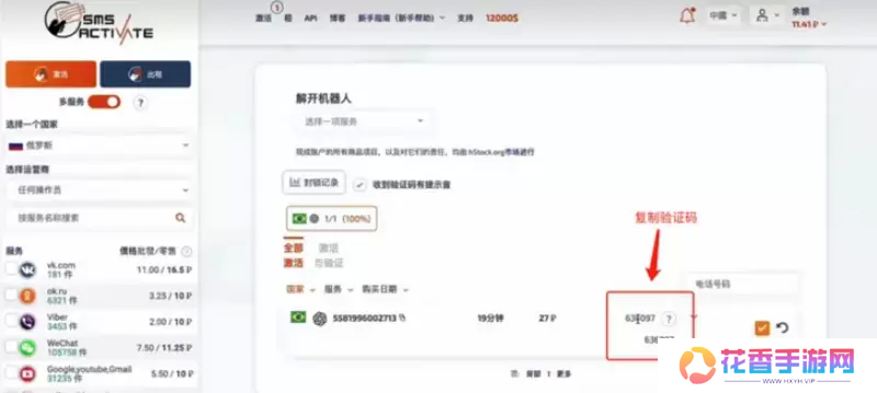 13、在虚拟号码网站可以看到验证码,复制。