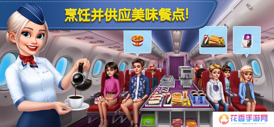 1. 玩家需要在飞机上设置厨房,并根据乘客的订单准备食材和烹饪工具。