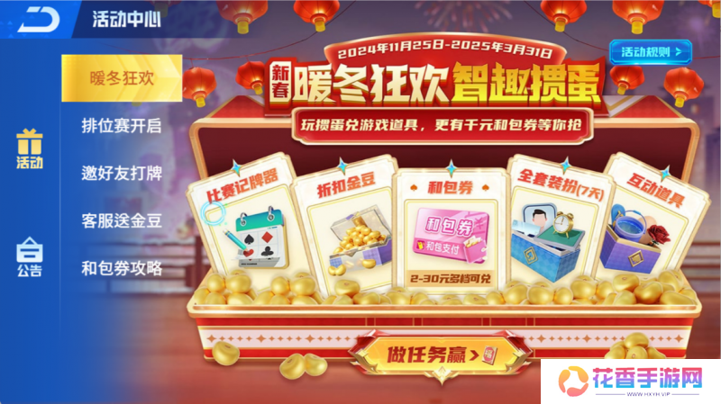 通过咪咕快游App一键进入《咪咕掼蛋》,无论是在旅途中还是与亲朋好友相隔千里,利用线上的“好友房”功能即可轻松组局,随时随地享受掼蛋乐趣。春节期间,《咪咕掼蛋》特别策划了“暖冬狂欢,智趣掼蛋”活动,参与者完成每日挑战任务即可获得福券,用以兑换包括游戏装扮、道具以及电子优惠券在内的多种奖励。这不仅让竞技与娱乐完美融合,更为用户带来了全新的互动体验。在这个新春佳节,只要心中有牌局,无论身处何地,《咪咕掼蛋》都能让您随时开启一场充满智慧与友谊的较量。