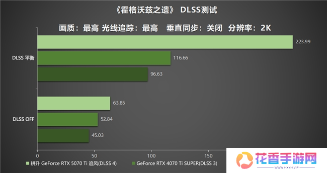 《霍格沃兹之遗》是一款支持光线追踪技术的游戏,对硬件配置要求极高。在2K分辨率下,GeForce RTX 4070 Ti SUPER和GeForce RTX 4070 Ti 在最高画质、光线追踪开启、DLSS打开时,两款显卡分别有116.66帧和96.63帧,而耕升GeForce RTX 5070 Ti 追风在启用DLSS 4技术后能够跑到223.99帧,其卓越的性能表现足以让玩家获得更为流畅的游戏体验。