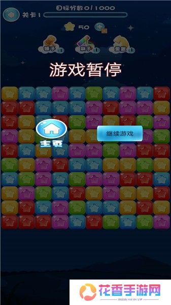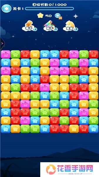 3. 消除星星:进入游戏后,玩家通过点击屏幕上的相连同色星星来消除它们。每次消除后,星星上方的方块会下落填补空缺,可能形成新的可消除组合。